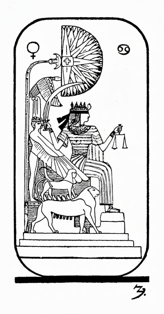 Sphinx atop lion: The primal force of instinct (lion) is continuously tamed and questioned by the mysterious cycles and riddles of the wild body.