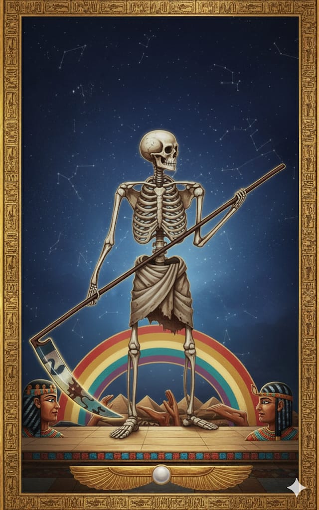 Every embodied journey meets the moment when what is old must end. The Transformation of the Body—iconized as Death, the Harvester, or Scythe-Bearer—reminds us that true renewal cannot happen without letting go. This is not tragedy, but sacred composting: releasing what has ripened in order to nourish the next cycle. The wisdom here is to recognize the mercy in endings, knowing every scythe sweep is a passage to rebirth both for the self and for the greater whole.